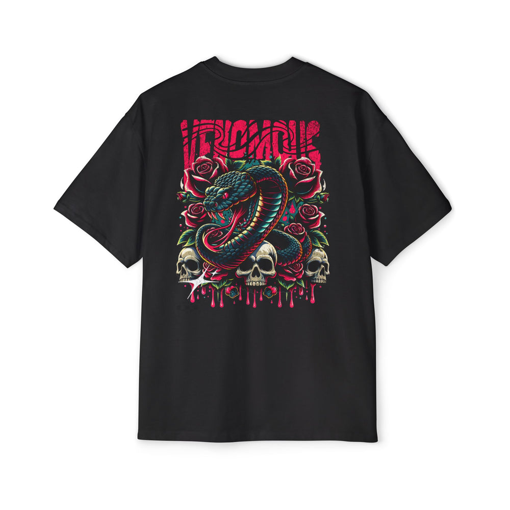Men's Heavy Oversized Tee - Bold Snake & Rose Graphic T-Shirt